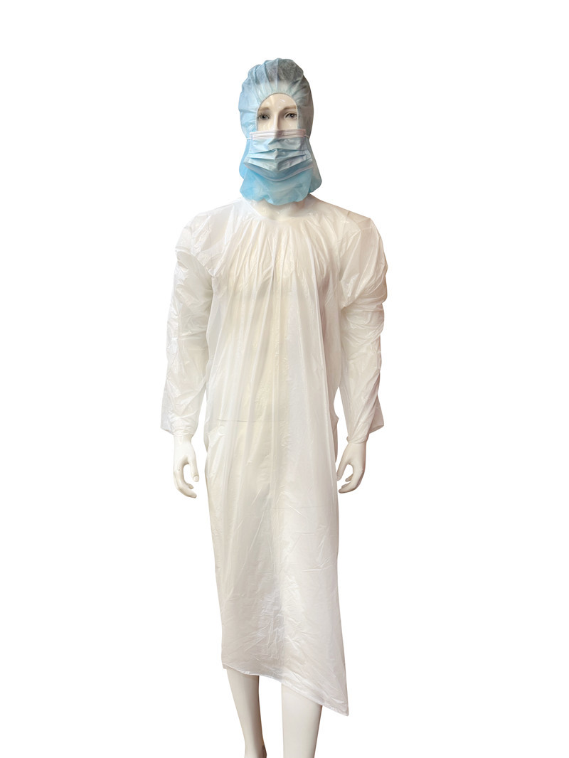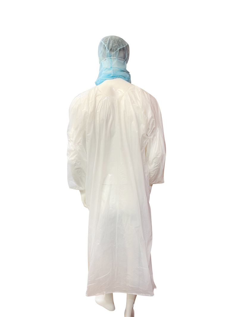 Material de polietileno (PE)El polímero termoplástico utilizado en los vestidos desechables de PE es un polímero termoplástico común conocido por su versatilidad, durabilidad y propiedades protectoras.Estas son algunas de las características clave del material PE en relación con los vestidos desechables: